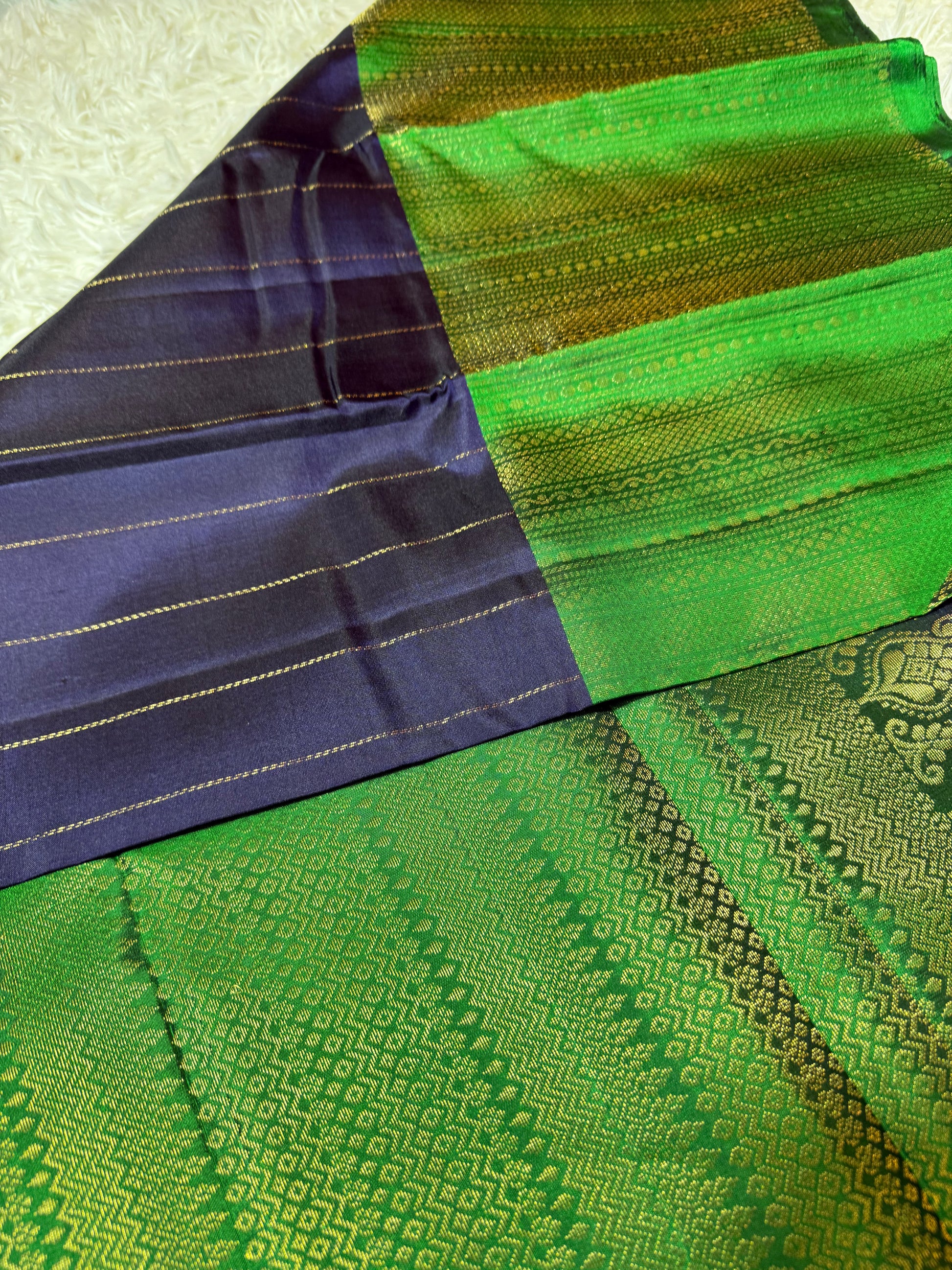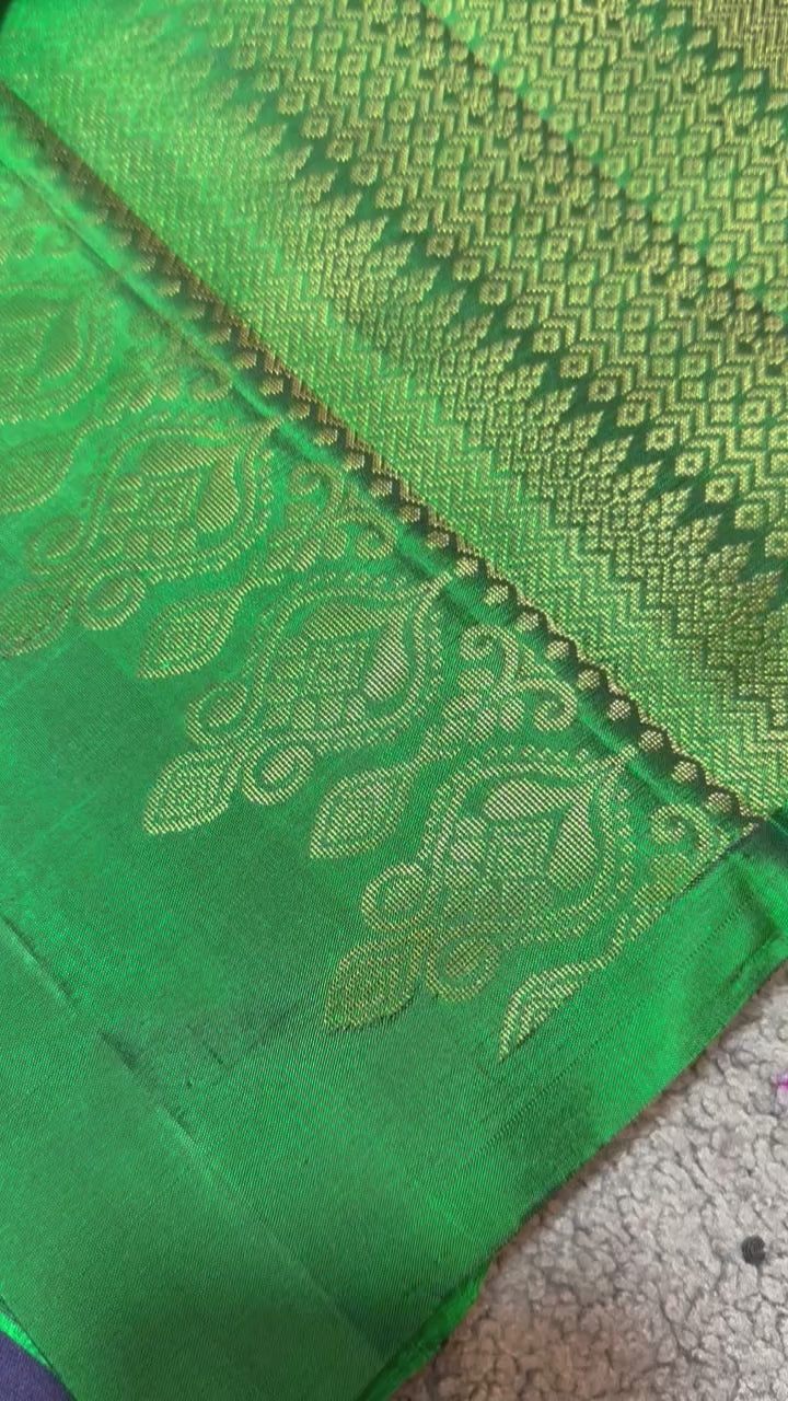 Midnight Blue Saree with Green border and pallu
