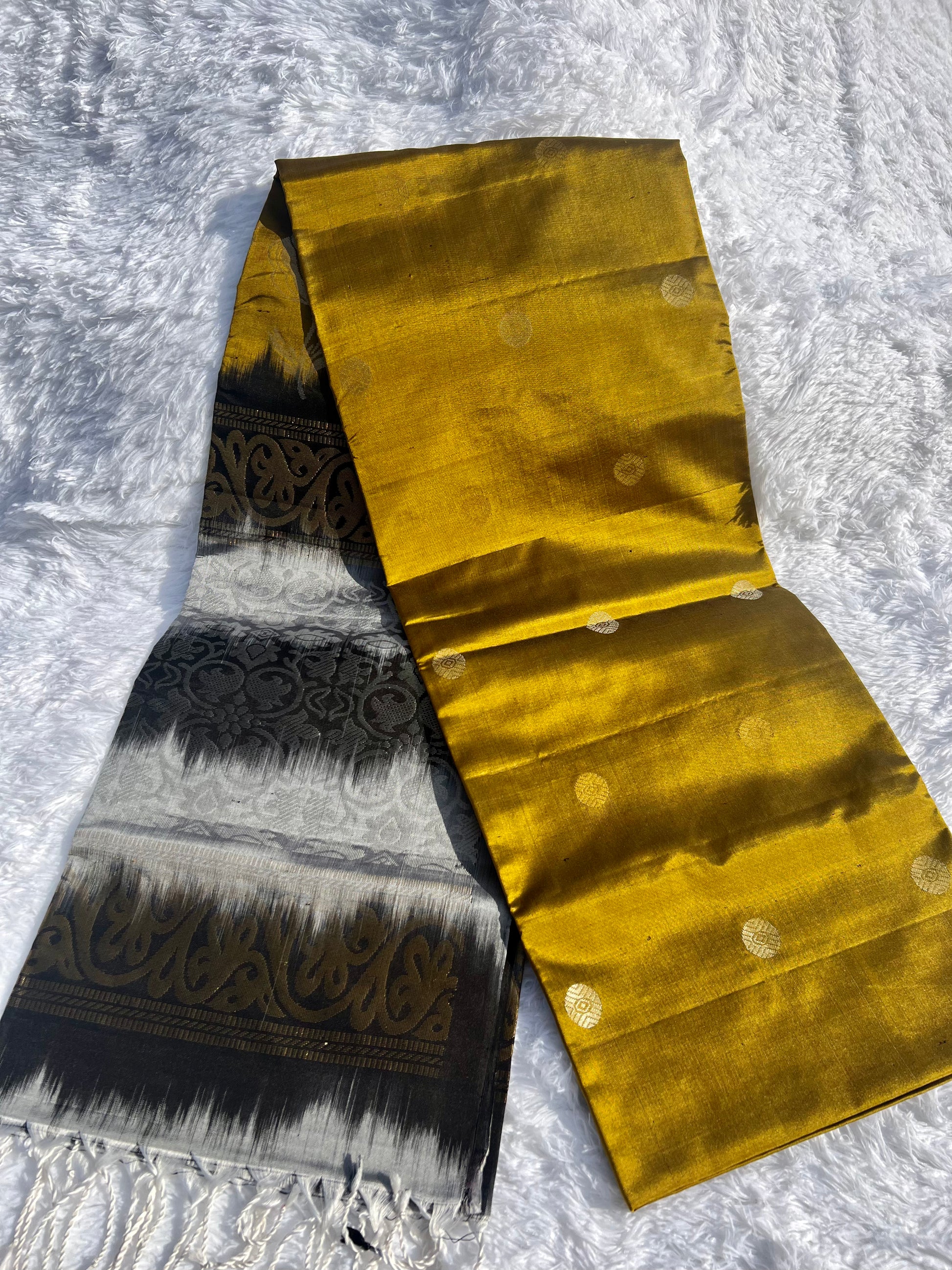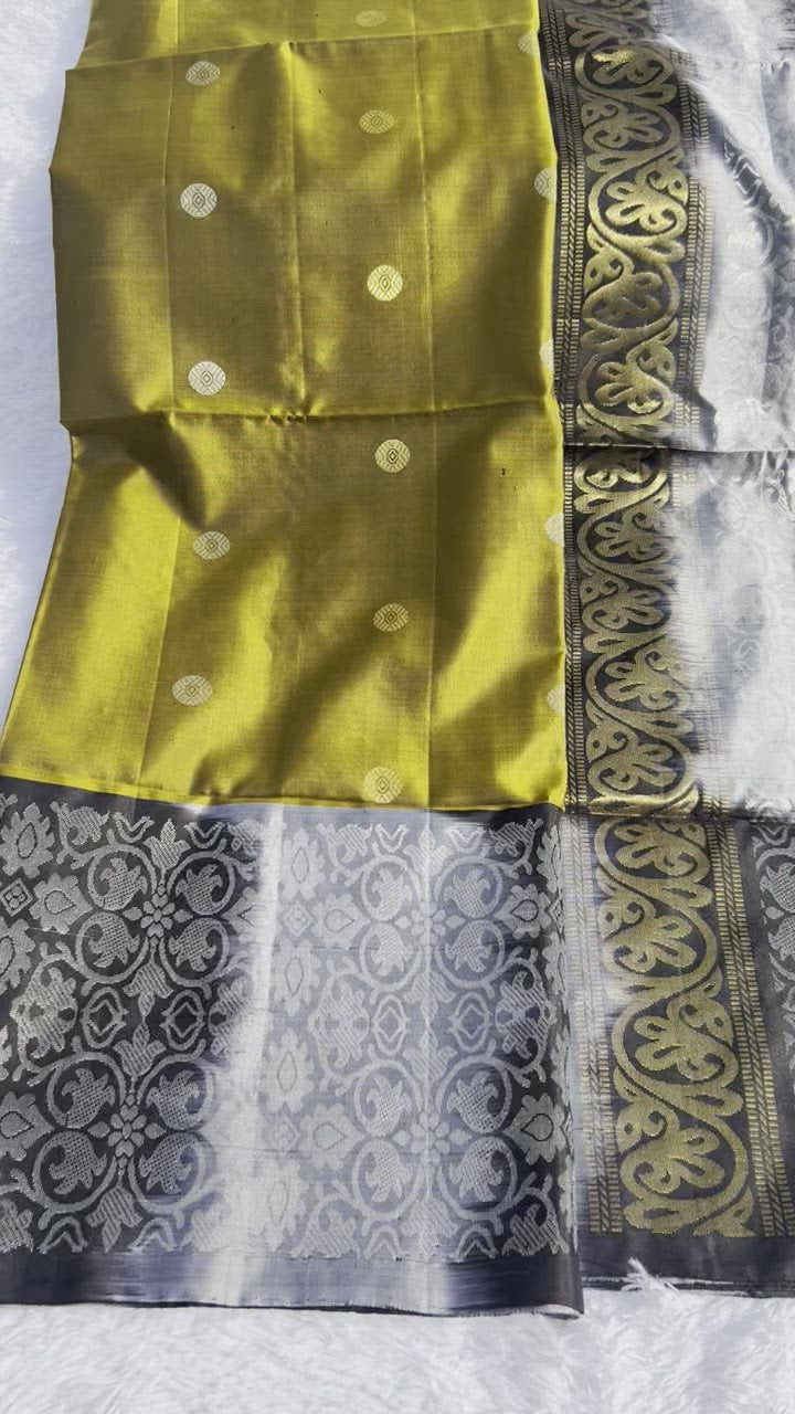 Olive green silk saree