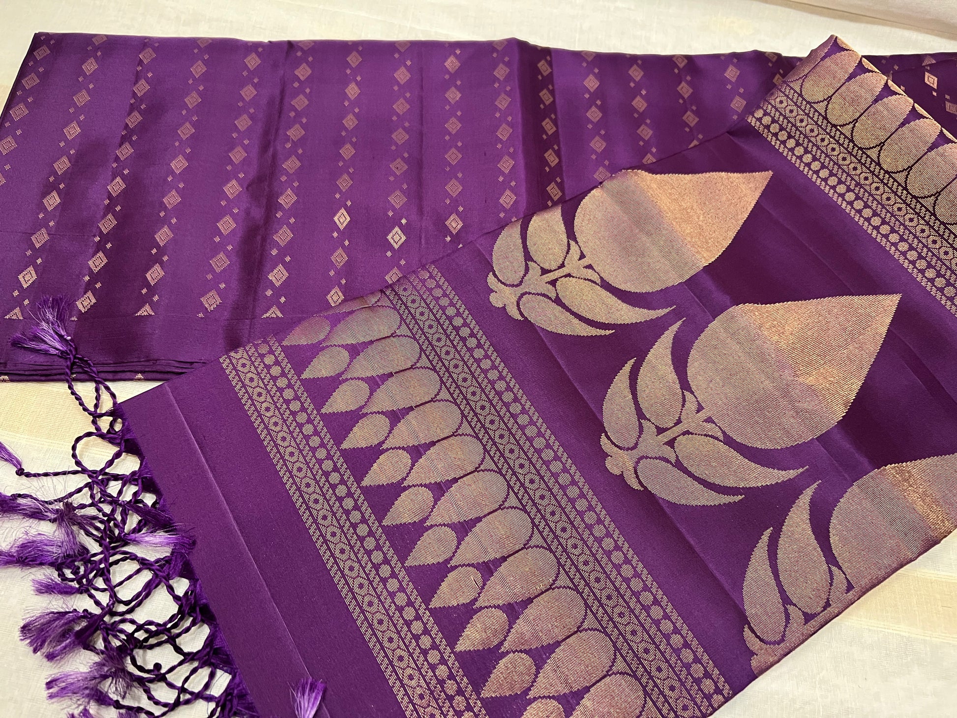 Vintage Violet Saree with golden butta all over the saree and beautiful golden pallu